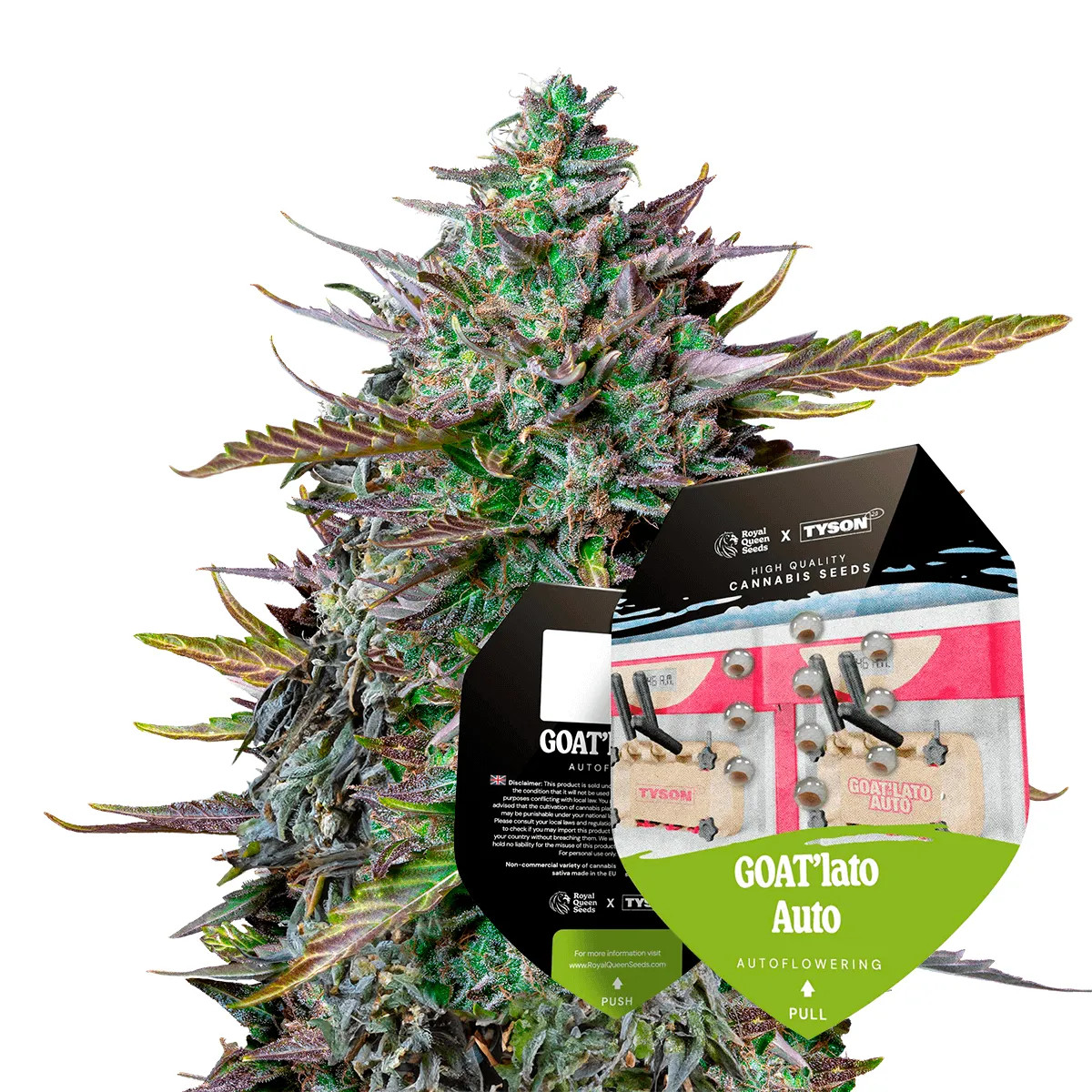 Goatlato Auto od Royal Queen Seeds je feminizovaná samonakvétací odrůda postavená na genetice Gelato 44 x Cookies Auto. V praxi to znamená rychlý cyklus a rostliny, které nepotřebují změnu fotoperiody, aby přešly do květu. Poměr 65/25/10 % podporuje kompaktní, výrazně „indikový“ charakter, ale s patrným nádechem lehčí, povzbudivější stránky.